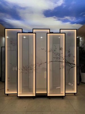 繊細 な 糸 で 織ら れ て いる 中国 の 景観 芸術 の 複雑 な 美しさ を 賞賛 し,中国 の 伝統 的 な 刺身 技法 の 技巧 や 工芸 を 展示 し ます.自然 の 光 を 犠牲 に し なかっ て プライバシー を 享受 するシルクスクリーン挿入付きのガラスの隔壁は 視界を隔離しつつ オープン感と明るさを保っています